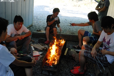 ■コメント : とりあえず火おこし。晩御飯は焼肉でした